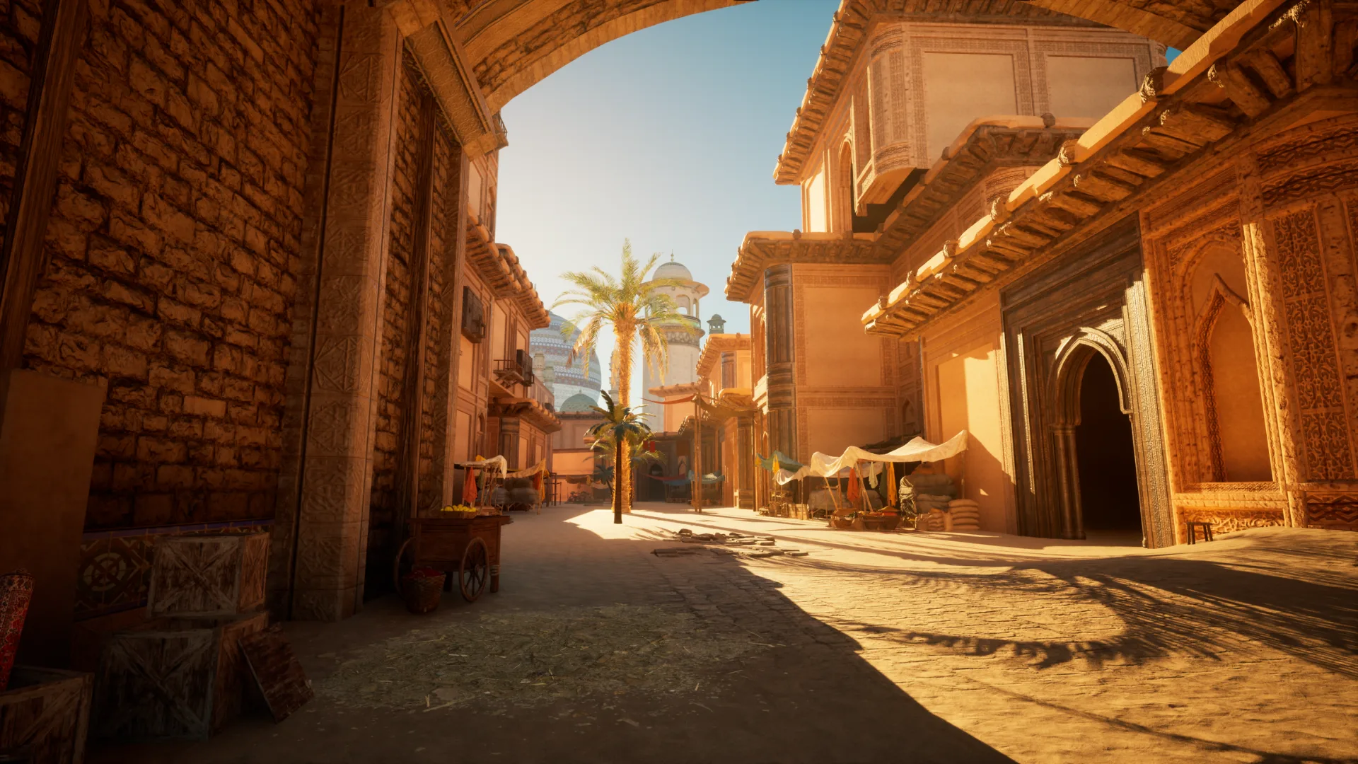 - Ambientes feitos à mão que contêm arquitetura da vida real que lembra edifícios árabes e Desi.